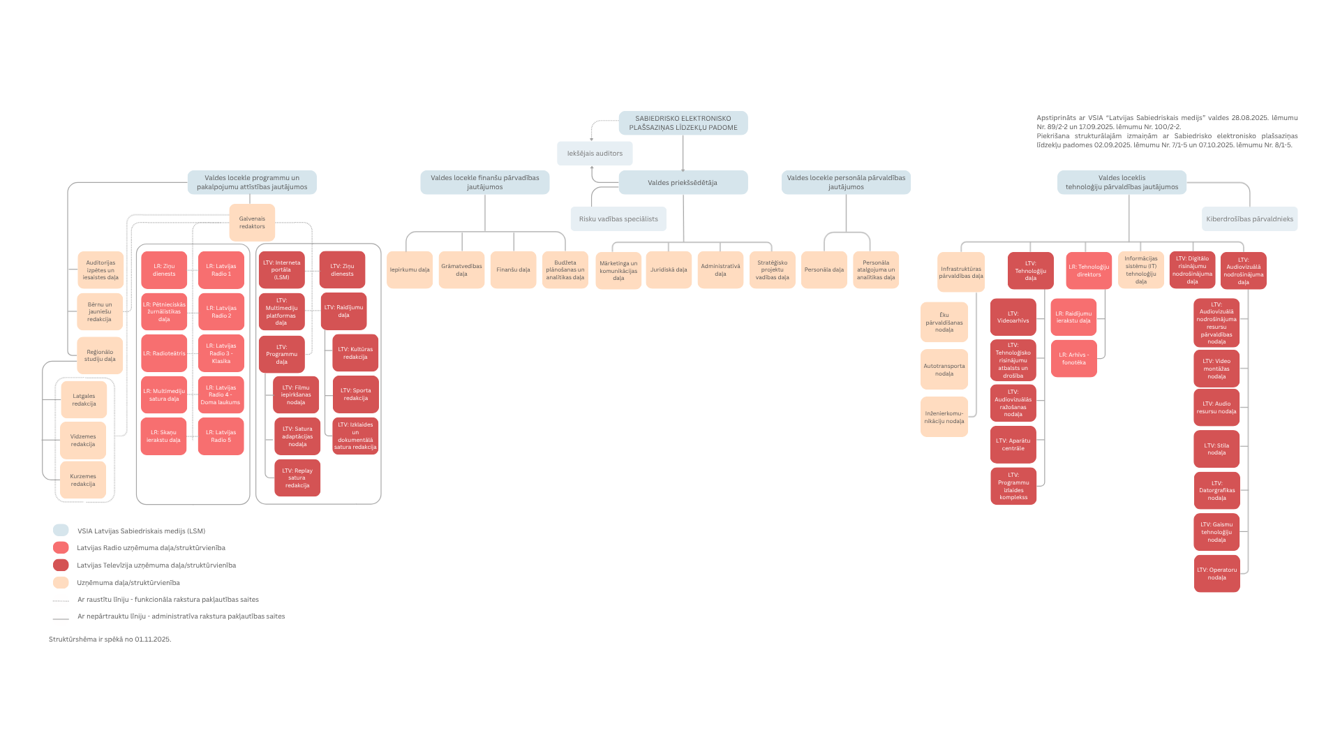 Latvijas Sabiedriskā medija organizatoriskā struktūra (struktūrshēma stājas spēkā no 1. novembra)